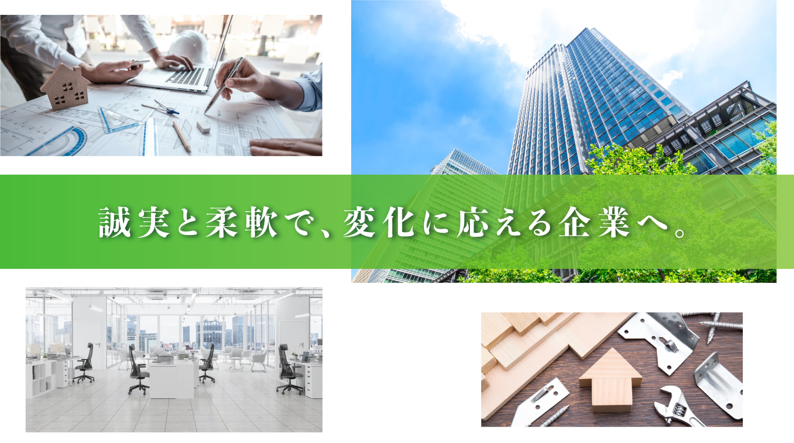 私たちは、「資材を通じて、信頼を届ける」という理念のもと、「信頼」「品質」「誠実さ」を大切にしながら、常に変化する社会や市場のニーズに対応してまいりました。